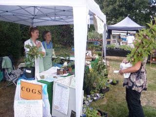 For the second year committee members loaded a camper van at dawn with all the paraphernalia and essential items needed to erect, stock and decorate a stall inviting enough to attract visitors and maybe increase our membership. The stall also needed to be educational and advertise the purpose of our society. The committee had brought along produce from their own gardens or plots, together with preserves, jam and even strawberries in gin. There was a steady flow of people interested in what we had to offer, especially the leaflets on companion planting and garden weeds which prove popular at all the shows COGS attends. |